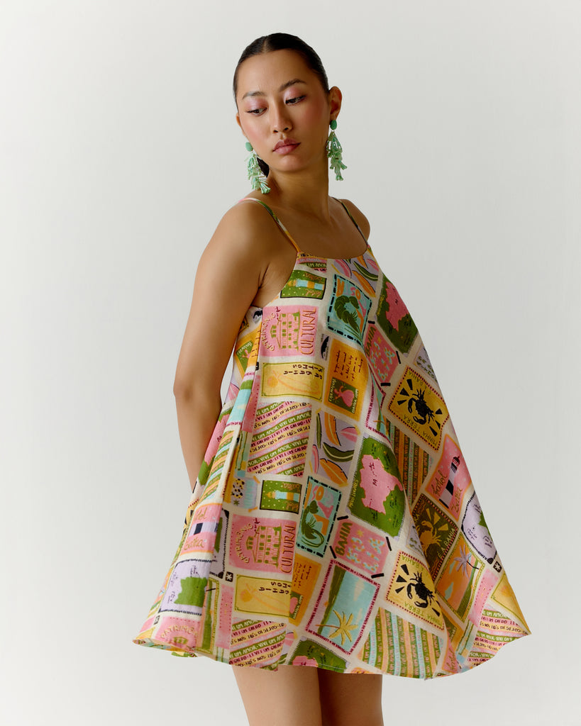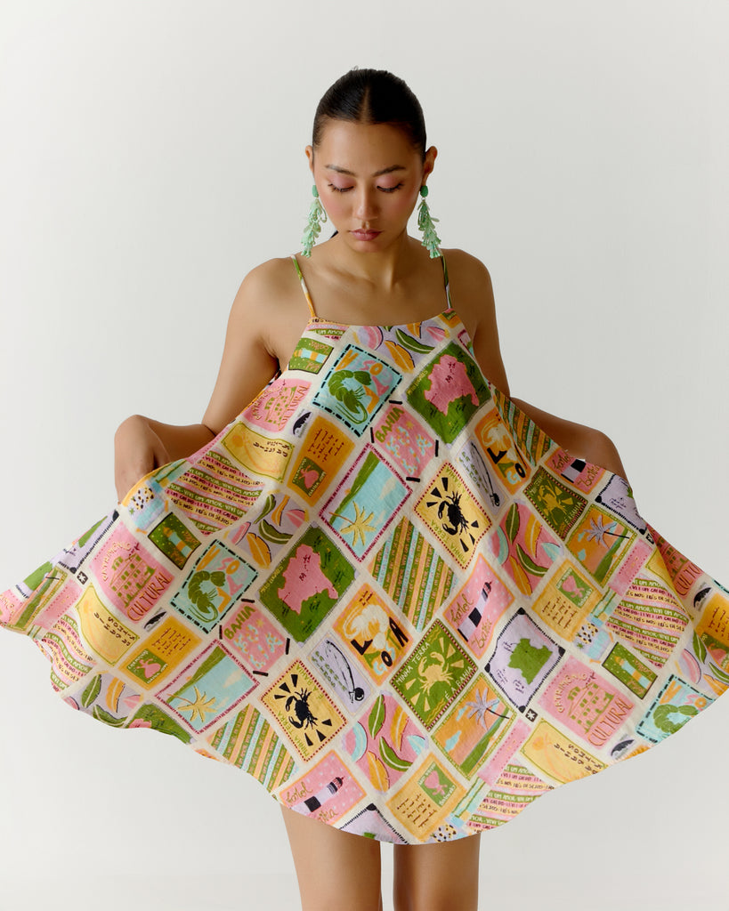 The Bahama Circle Dress is the perfect fusion of sexy, cute, and bohemian vibes. Featuring a playful, flowy circular silhouette, this dress moves with your body, creating a fun and flirty feel with every step. The vibrant bohemian print adds an eclectic touch. The dress’s youthful design gives off a sexy laid-back vibe and a free-spirited care free energy.