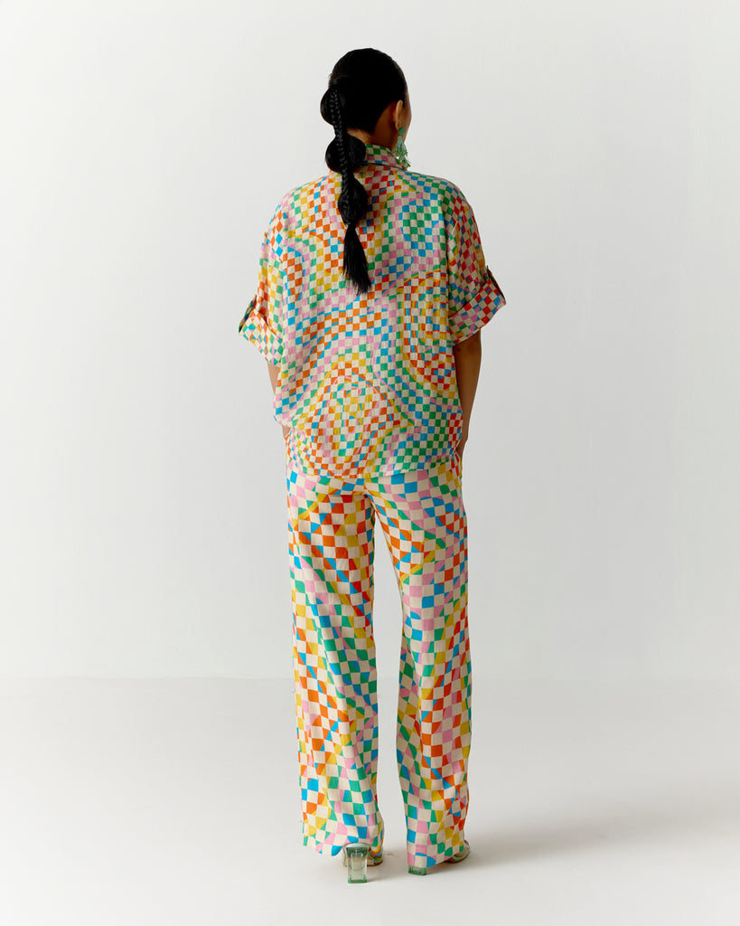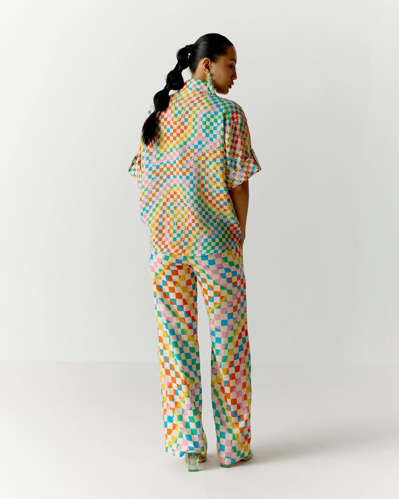COLOR SQUARE ROLL UP SLEEVE SHIRT AND PANTS SET