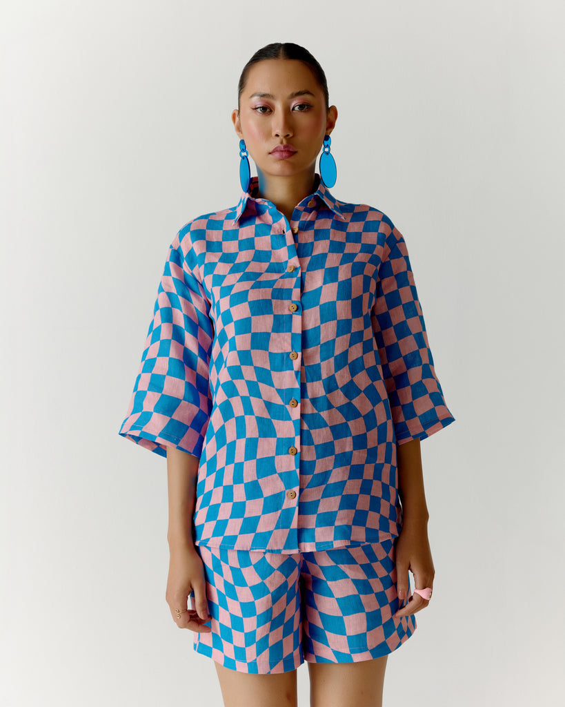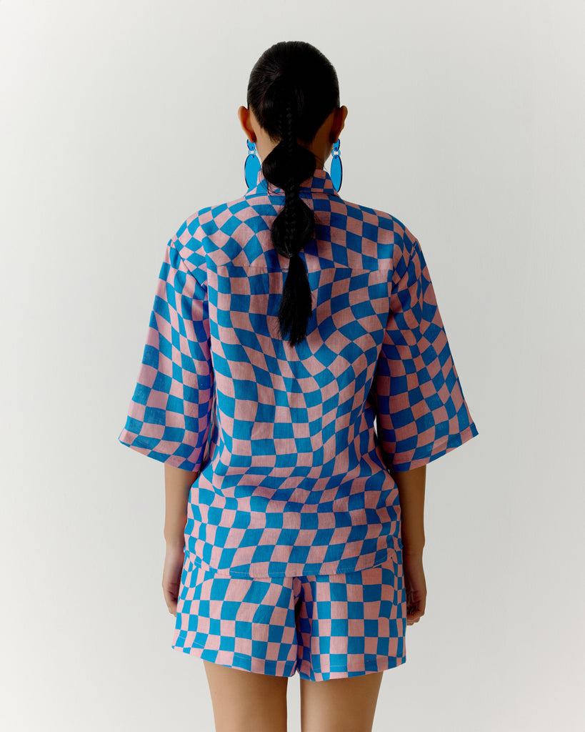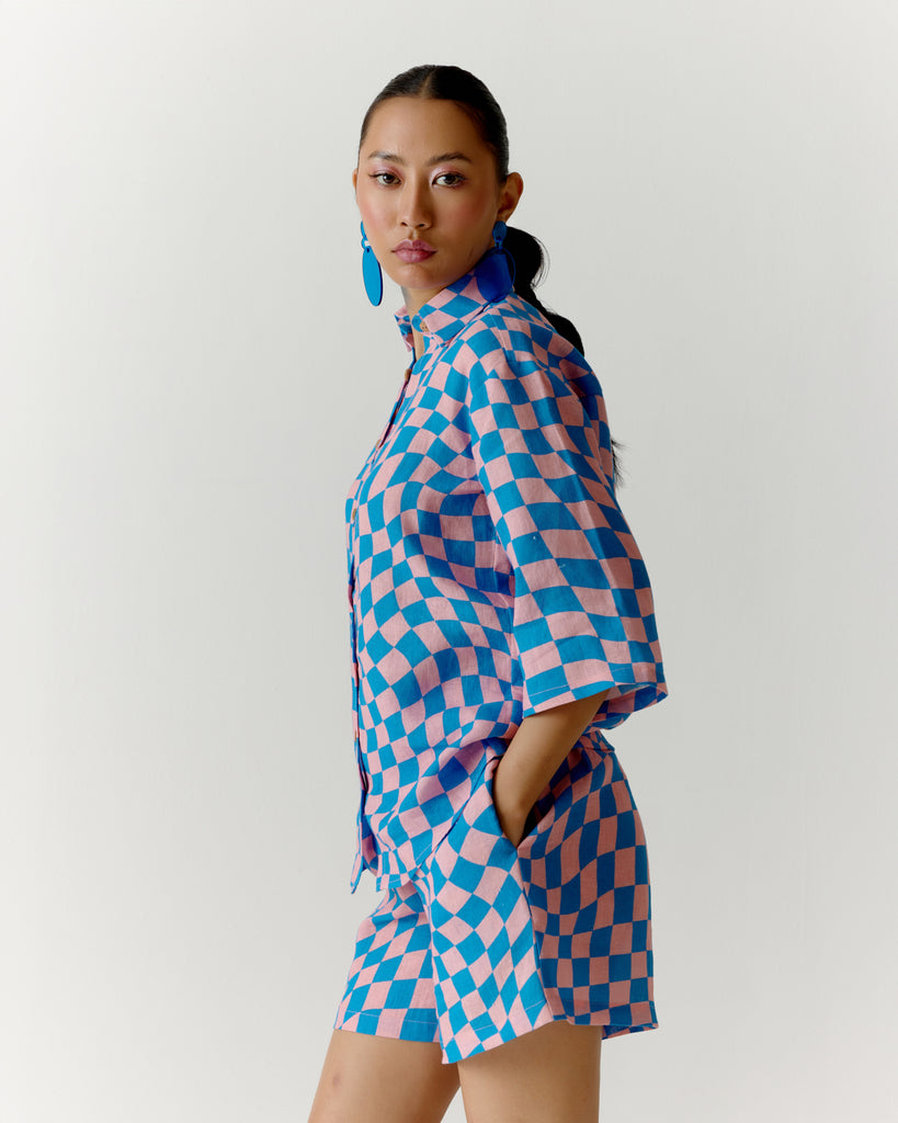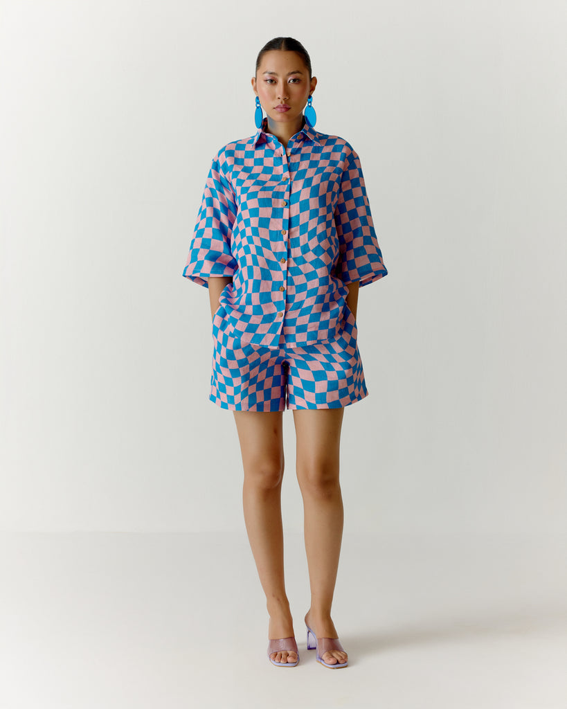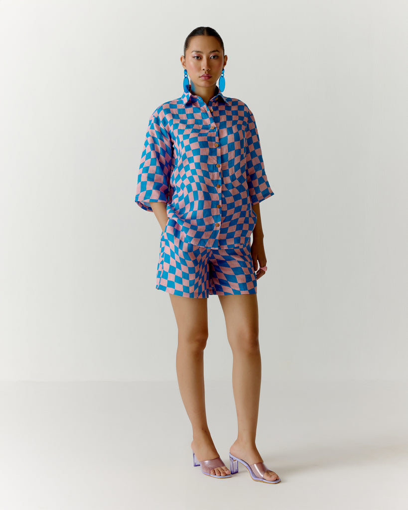 PINK SQUARE OVERSIZED SHIRT AND SHORTS SET